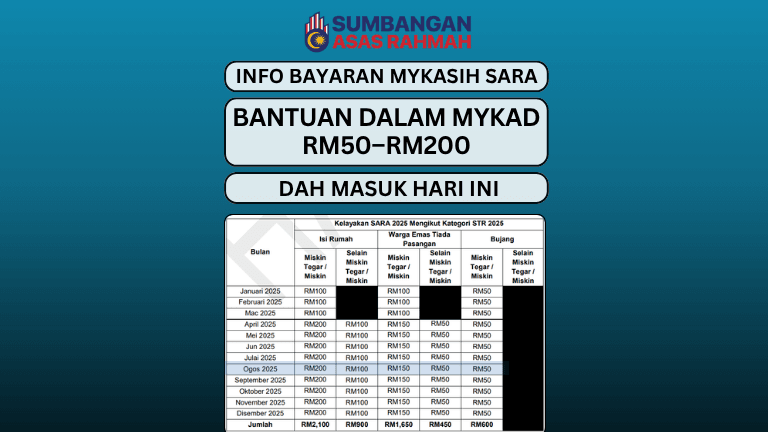 - MyKasih SARA 2025 – Bantuan berulang setiap bulan (contohnya RM100 atau RM200 setiap bulan) bergantung kepada kategori penerima.