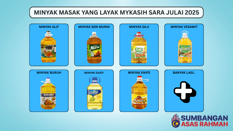 Berikut ialah senarai jenama minyak masak yang layak dibeli menggunakan bantuan MyKasih SARA bulan Julai 2025: